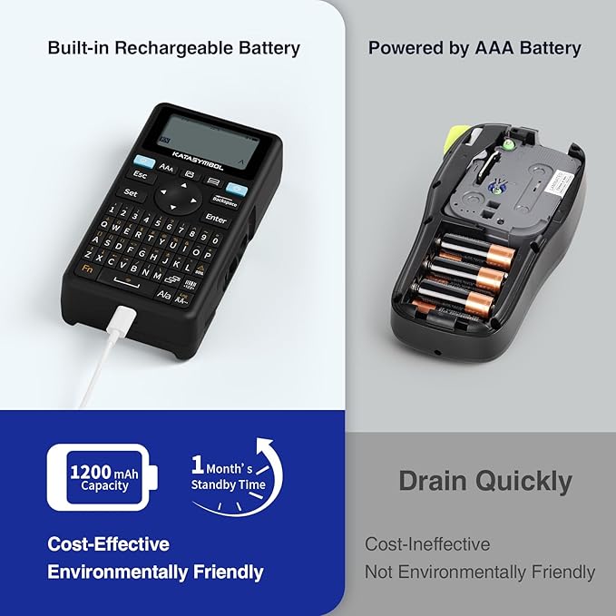 - Portable with Rechargeable Battery: Features with 1200 mAh battery provides up to 1 month of use per charge, offering great cost efficiency; lightweight (0.5 lb) and compact (5.7" x 2.9" x 1.3"), ideal for on-the-go labeling