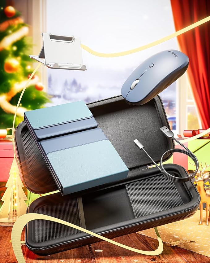 - 【Quiet Design & Adjustable DPI 】 Silent scissor switch keys and non-slip PU leather bottom allow you to work with full concentration! Innovative seamless metal hinge design lets you get your own familiar layout! Smooth typing experience and precise cursor control make it a perfect match for tablet, phone, laptop and PC. Type easily without worrying that the tapping sound may disturb others!