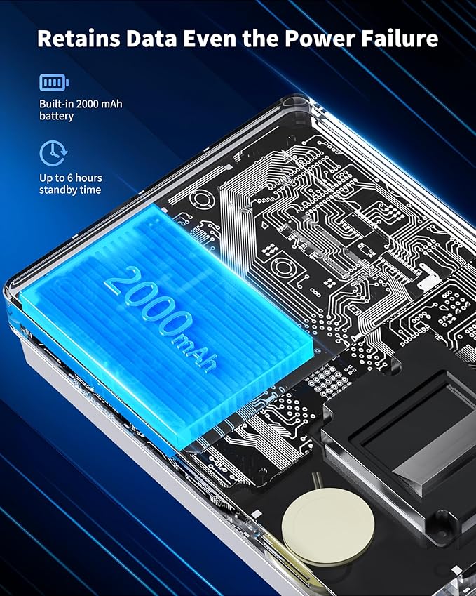 - 2000mAh Battery for Power Outage Protection: Worried about losing data during a power outage? With the built-in 2000mAh battery, this time clock keeps working even if the power goes out, ensuring that your attendance data is safely stored and protected from unexpected disruptions.