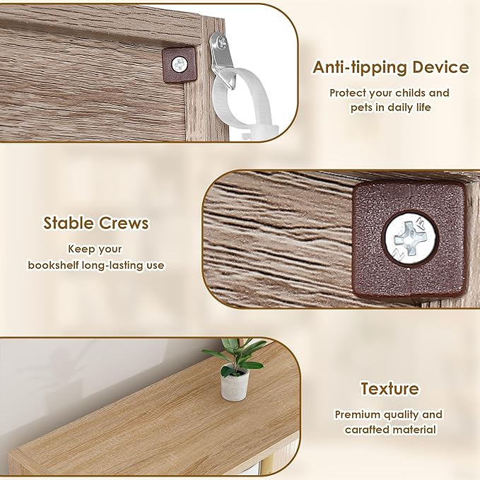 - Sturdy & Stable - Constructed from high-quality particle board for lasting durability. Meanwhile, this bookshelf includes tipover restraint piece at the back for prevent book shelf from tipping over accidentally