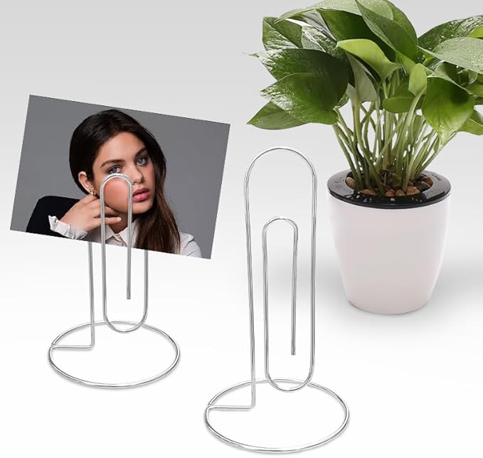4 Pack Sliver Large Paper Clip Memo Holder for Desk,Letter Holder,Paper Stand for Desk,Letter & Bill Storage,Mail Organizer Office Accessories Desktop Message Office Decor