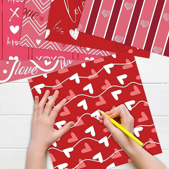 - Delicate Colorful Designs: These 12x12 heart pink scrapbook decorative papers feature delicate colorful designs in red, pink, and white, printed with heart patterns and love letters. These beautiful designs are used for adding warmth and love to your photo scrapbooks, journals, or cards. The love heart themes are capable of transforming your crafting projects into heartfelt and meaningful creations