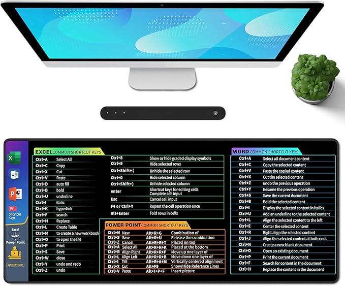 Galdas Gaming Mouse Pad XXL XL Large Long Extended Big Mousepad Non-Slip Rubber Keyboard Desk Pad with Stitched Edges for Laptop Home Office (31.5x11.8x0.08 Inch) … (Shortcut Keys1)