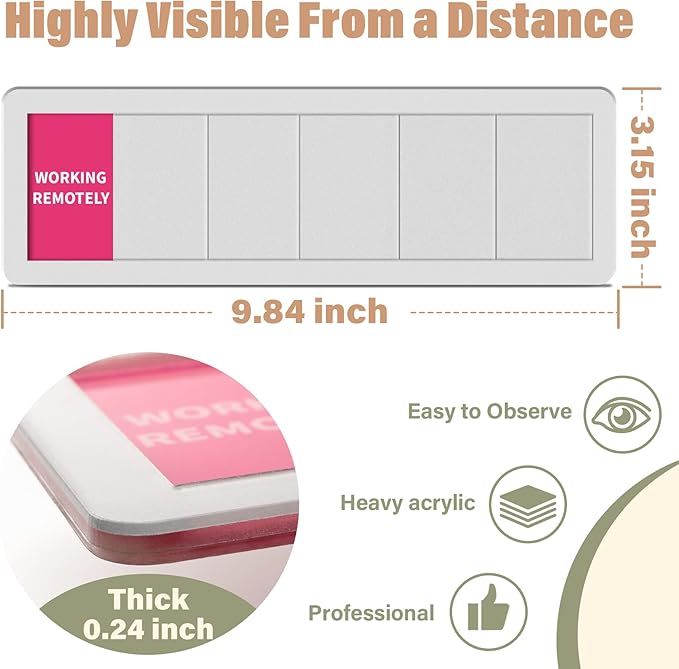 - 【6 Clear Privacy Options】Our slide door sign includes 6 status options: Do Not Disturb, Please Knock, In a Meeting, Out of Office, Working Remotely,Back soon. This office door sign avoid unnecessary interruptions and let others know your work status.