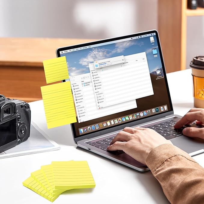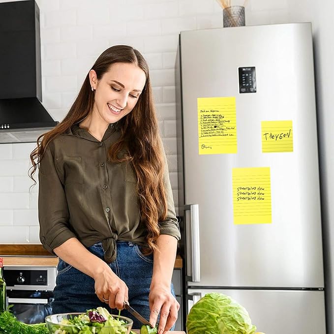 NatureTouch Lined Sticky Notes 6 Pads 3x3 and 4x6 inches Self-Stick Notes Pads with Power Sticking,Bright Ruled Post for School, Home, Office-Yellow