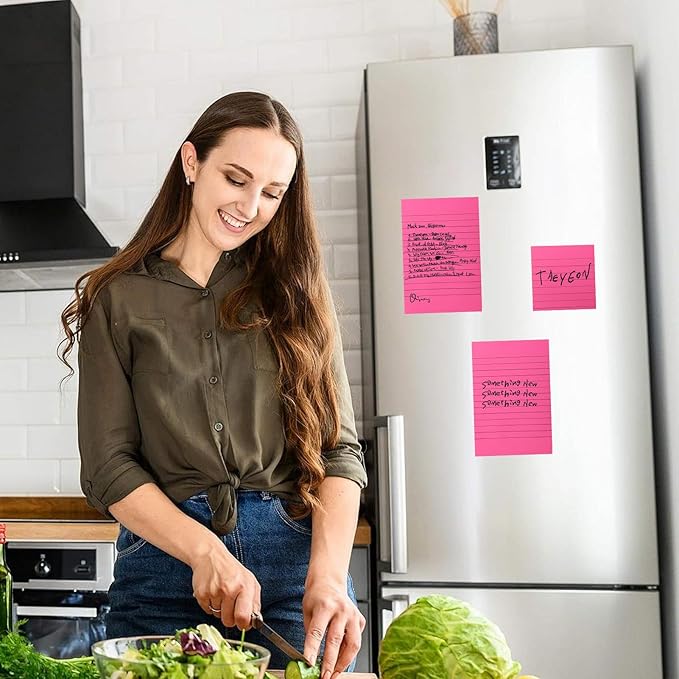 NatureTouch Lined Sticky Notes 6 Pads 3x3 and 4x6 inches Self-Stick Notes Pads with Power Sticking,Bright Ruled Post for School, Home, Office-Yellow