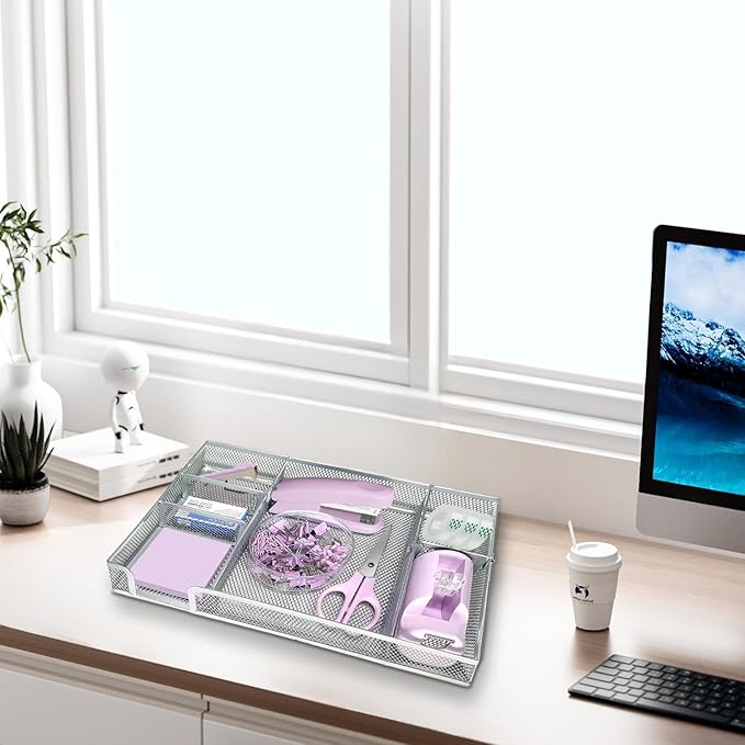 - 【Package Includes】:This Purple office supplies contains 1x desk drawer organizer , 1x Stapler , 1x Staple Remover, 1000x Staples, 1x Tape Dispenser, 1x Tape, 1x Office Scissor,20 x Push pins, 7 x Big Clips 13 x Small Clips and 25 x Paper Clips, 100x Sticky Note. Such a complete purple desk accessories combination can meet your daily office and study needs.