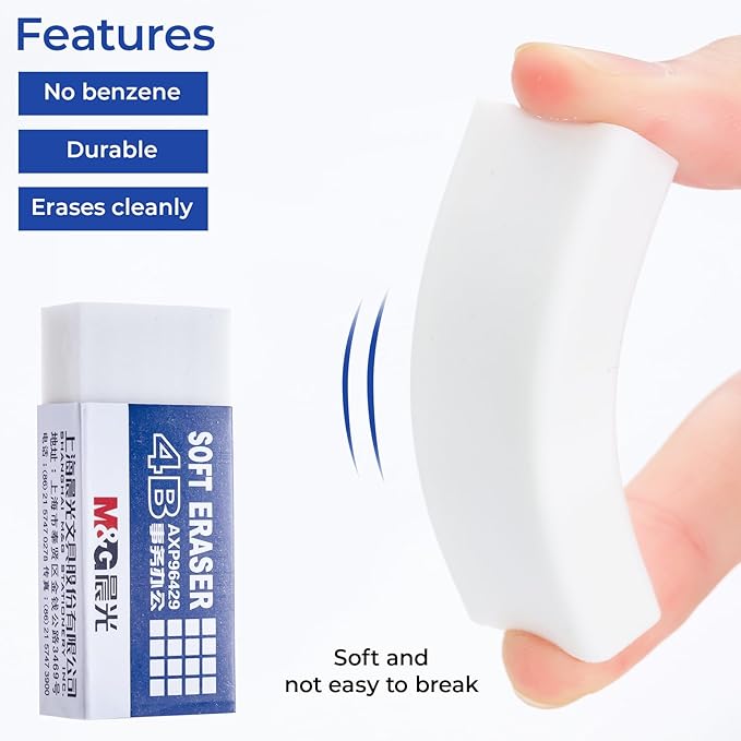 - Soft and Durable Material: Made from high-quality rubber, the eraser is soft yet sturdy, ensuring gentle use on paper without tearing it. It is long-lasting and won't break easily.