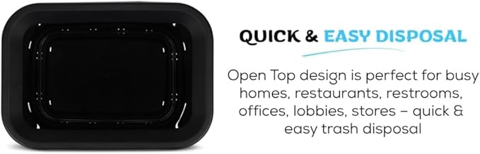 - QUICK & EASY DISPOSAL – Open Top design is perfect for Commercial Spaces and Busy homes: Restaurants, Restrooms, Offices, Lobbies, Stores – Quick & Easy Trash Disposal