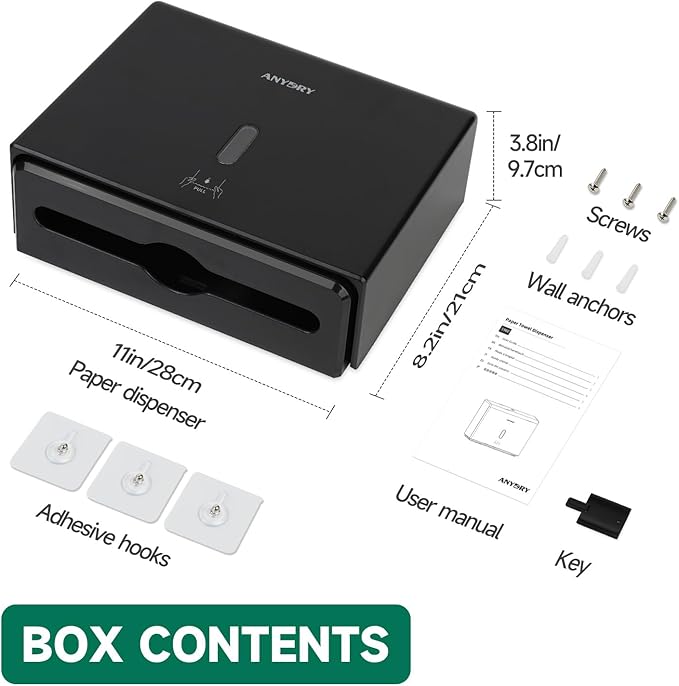Wall-Mounted Paper Towel Dispenser – Fits Tri-Fold Towels up to 10x3.1 Inches, Holds 200 Sheets, Ideal for Home & Commercial Use (Black)