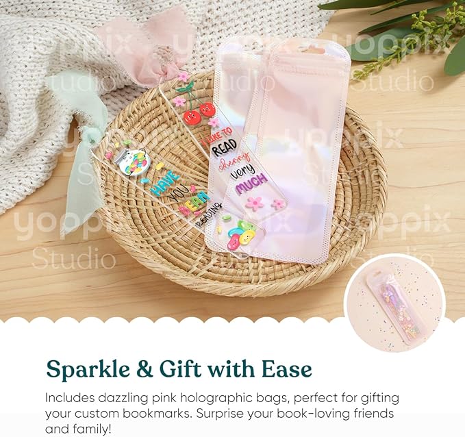 - 【65PCS Acrylic Bookmarks Kits】:You will receive 15 pcs 3mm thick blank acrylic bookmarks, 20 pcs fruit food theme uv dtf sticker, 15 ribbons and 15 pcs holographic bags. Sufficient quantity will meet your needs of personal use or presenting, and you can share them with your family or friends.