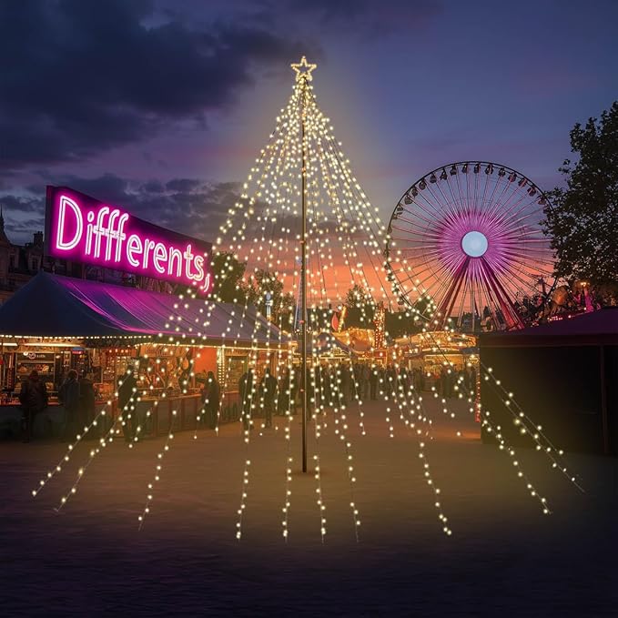 - Stunning Christmas Vibe - Christmas Tree Lights consists of 28 lines of string lights around a star topper, fast to set up for a gorgeous display of sparkling lights, illuminating the yard space brightly and transforming it into a captivating winter wonderland