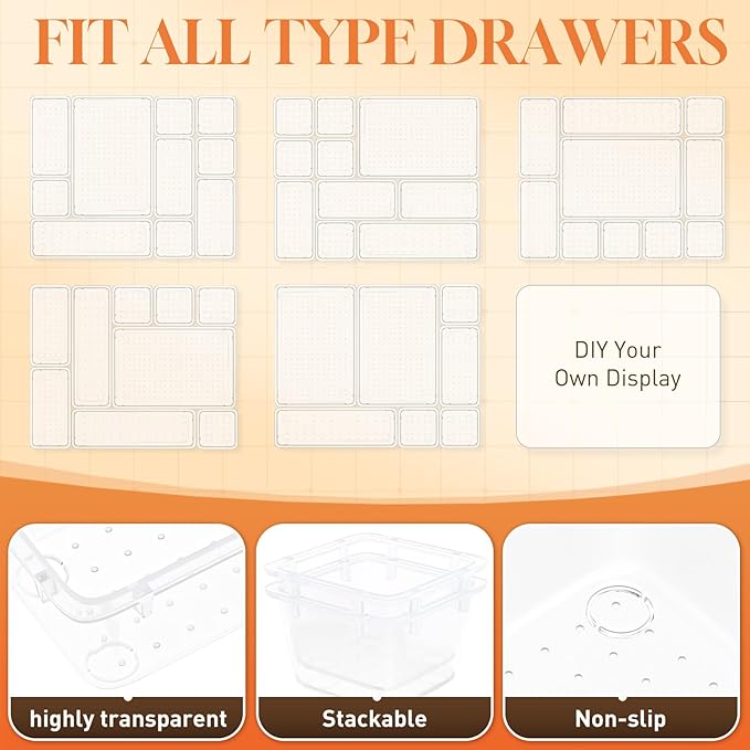 - Ultimate Storage Solution: 27-piece set of clear drawer organizer bins, featuring four sizes (3x3 inches, 6x3 inches, 9x3 inches, 9x6 inches) of drawer organizers, is the ideal choice for achieving perfect organization and storage