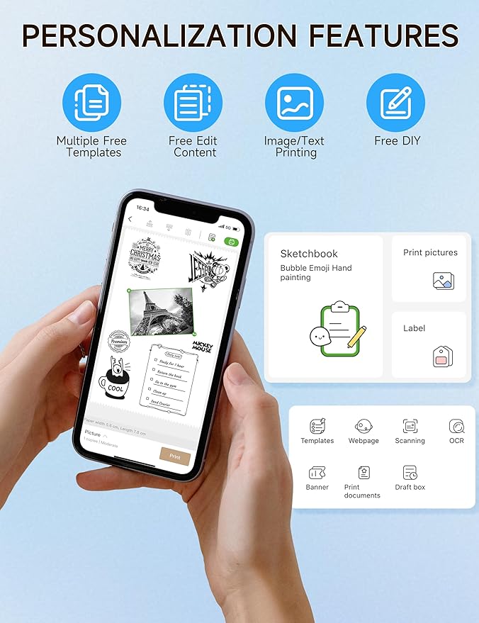 - Customized Label Printing: With our Mini Printer, you can easily customize your labels and stickers to suit your needs. Simply connect to the printer and let your creativity take over
