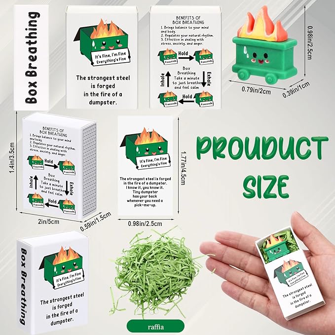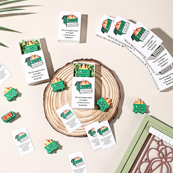 - Sufficient Quantity: you won't be disappointed with our emotional affirmation small gifts! The package includes 36 resin dumpster trash shape with fire ornaments, 36 gift boxes, and 36 inspirational cards with "it's fine I`m fine everything is fine"; They are very exquisite and cute with interesting puns, they're suitable for when you need to give out many tokens of appreciation or encouragement with a cute twist to bring warmth to others