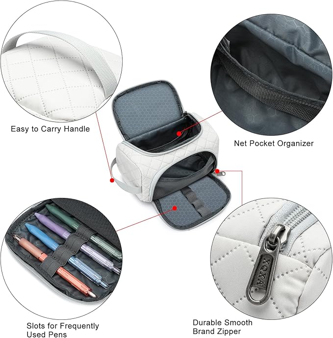 - 【Unique Design Pencil Case】Open this pencil bag from the top or front flap, you can fix commonly used pens in the flap which has 4 solts. An additional handle design on the side makes this pencil case easy to carry