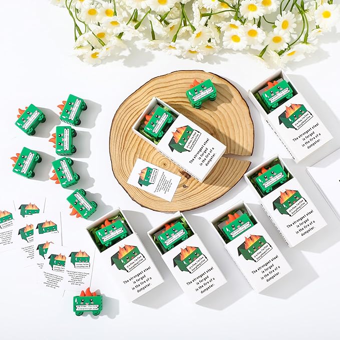 - Reliable Material: our resin dumpster trash shape with fire ornaments are made of resin material, which is waterproof and not easy to fade; The inspirational card is made of double copper paper, which is sturdy and reliable; The box is made of cardboard, which is sturdy and reliable; These mini gifts can spread positive energy and bring smiles to everyone's face