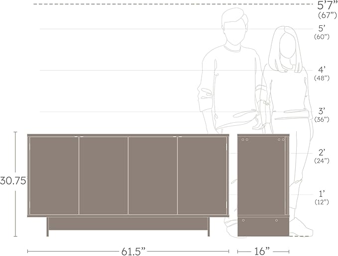 - ASSEMBLED DIMENSIONS & WEIGHT: Finnley Black Oak Sideboard 16"D x 61.5"W x 30.75"H, Total weight- 115.00 lbs., All pieces arrive ready to assemble in 1 Box.