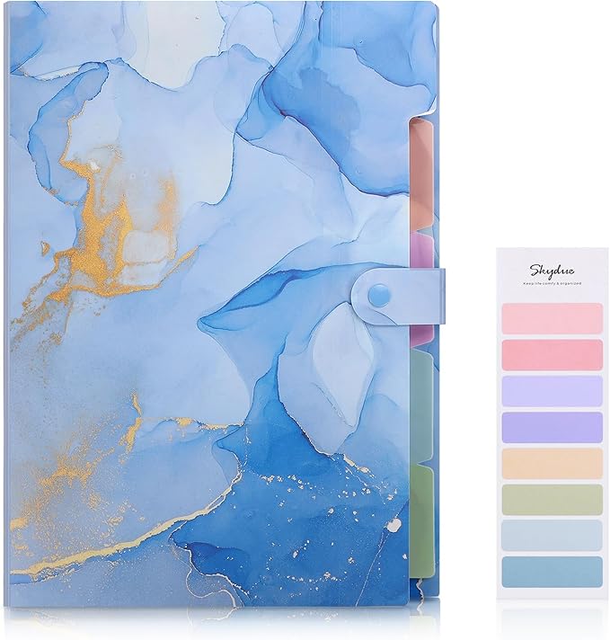 SKYDUE 5 Pockets Expanding File Folder, File Folders, Cute Accordion File Organizer with Labels (1 Pack, Blue)