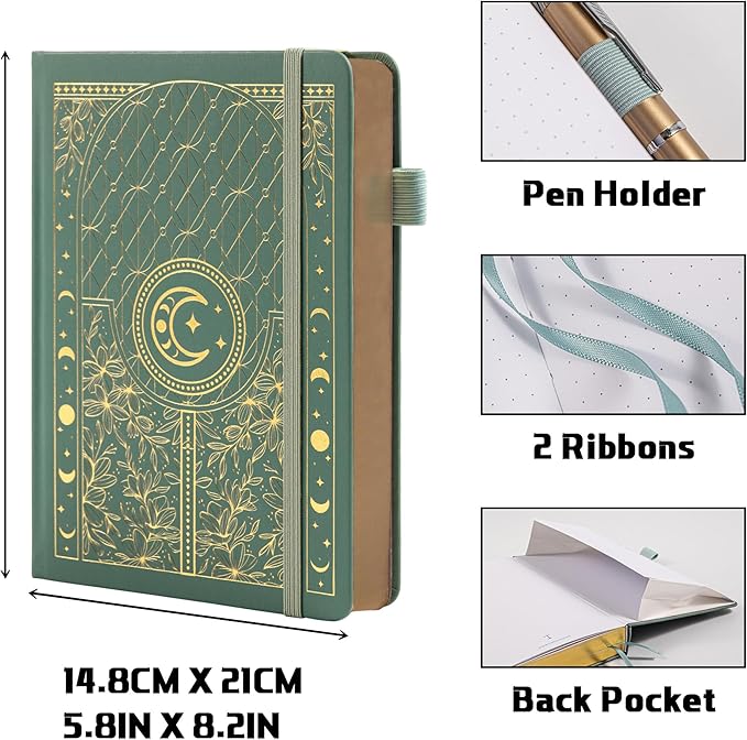 - A5 Hardcover Dotted Journal: The A5 Dot Matrix Notebook is the perfect combination of style and function. With an elasticated pen loop, two ribbon bookmarks, signature page, lanyard, and expandable inner back pocket, making this dot notebook a must-have for anyone looking to stay organized. Jot down your fun facts and thoughts in this special bullet point dot journal.