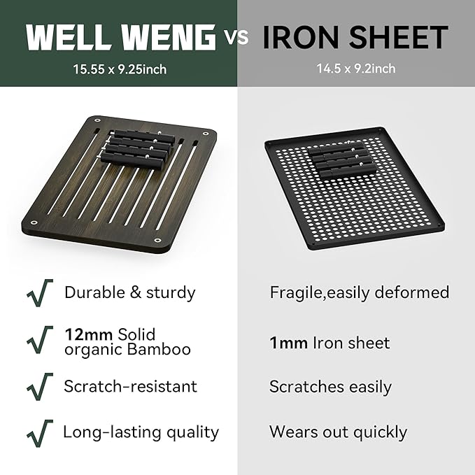 - Effective Heat Dissipation: Our monitor stand is crafted from high-quality bamboo, featuring a ventilated platform to prevent overheating and improve airflow for your electronic devices.Dimension-15.55”Wx9.25“Dx5.98"H(max)
