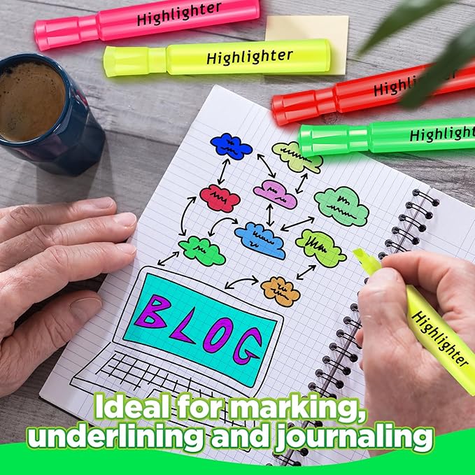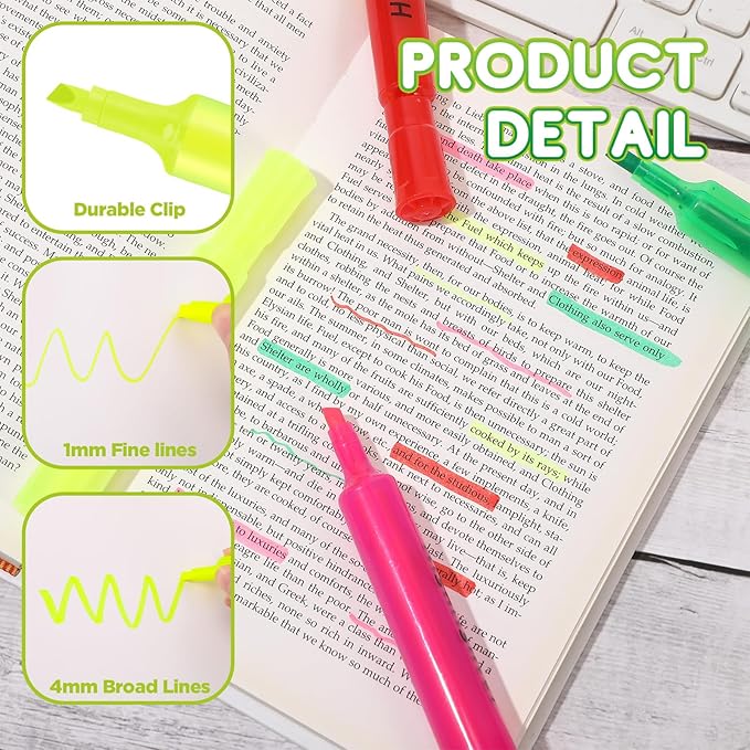 - Thoughtful Design Details: the highlighter come with a quality chisel tip, providing wide highlighting and thin underlining, which you can create thick and thin lines; And the fitting cap protects the nib when not in use
