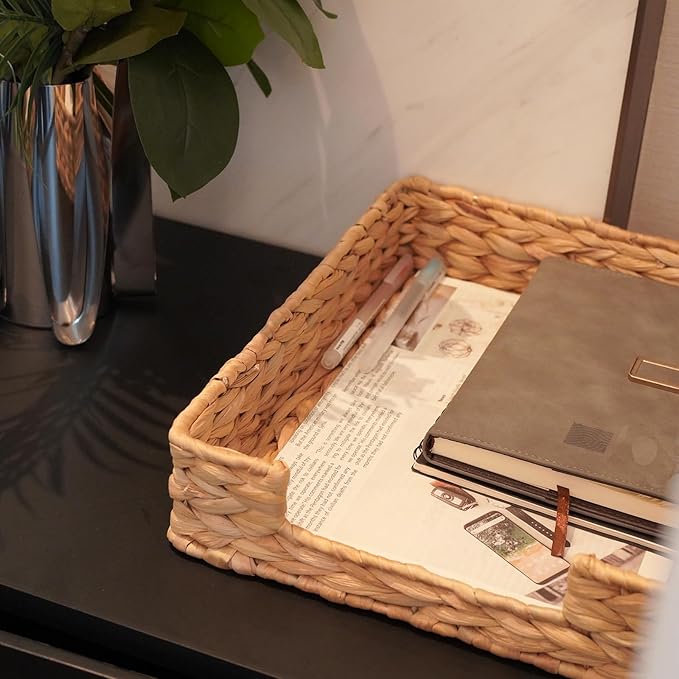 - Natural Material & Durable Build: Made from 100% hand-woven water hyacinth with a sturdy metal frame, this desk basket is designed to be durable and resilient. Its natural color brings a warm, rustic feel to any workspace while remaining eco-conscious and safe for everyday use.