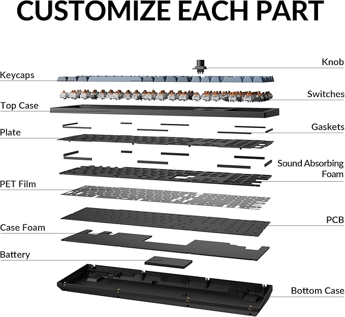 - Gasket Mount Design for Quiet Typing: The V6 Max's gasket mount structure, paired with premium acoustic foams, minimizes noise and optimizes typing comfort. Every keystroke feels smooth, stable, and satisfying—ideal for work or play