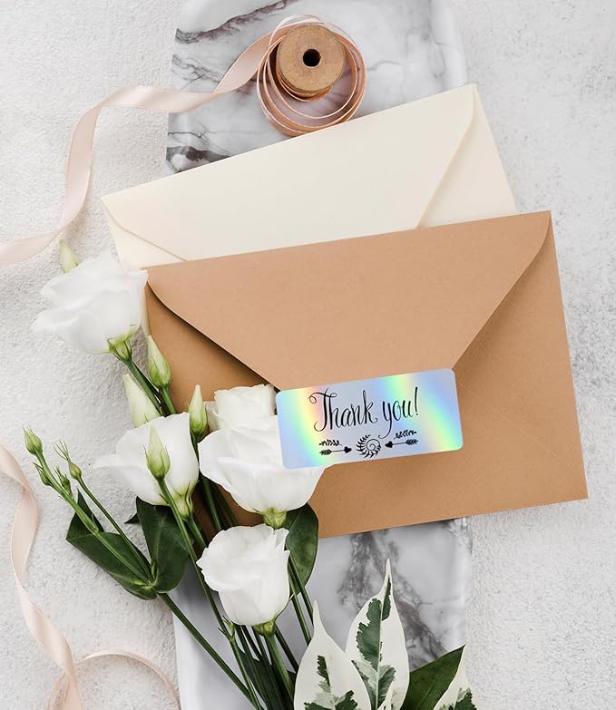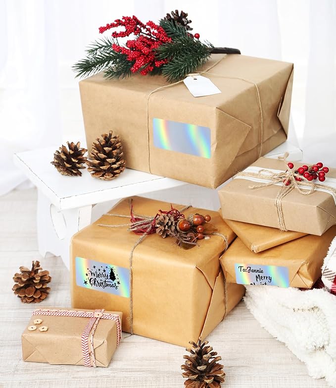 Holographic Square Thermal Labels (4 x 2 inch), Self-Adhesive Direct Thermal Sticker Label, Compatible with All Thermal Shipping Label Printers, for Name, Price Tag, DIY, Logo, 500 Labels/Roll