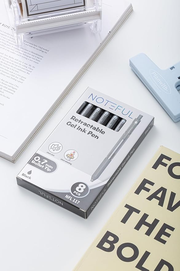 Retractable Silent Click Gel Pens For Journaling, Smooth Writing, Black Gel Ink Medium Point Pen (0.7 mm), Pack of 8