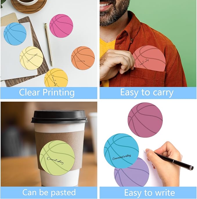 - Basketball Shaped Design: Our colorful note pads are featuring the sports theme, designed as the basketball shape and printed in 12 different colors, vivid and delicate; While enrich the appearance of the sticky notes, it also increase the fun and festive atmosphere