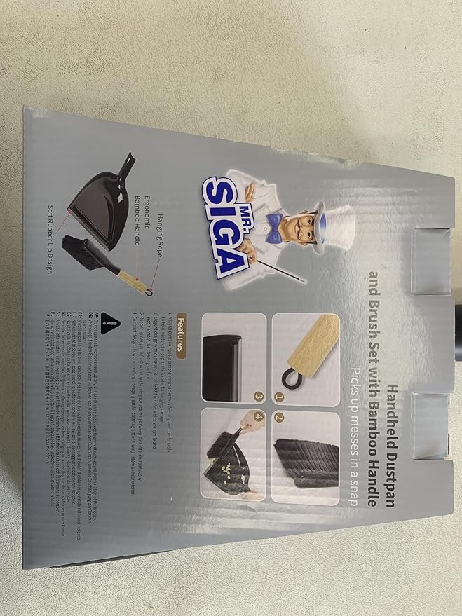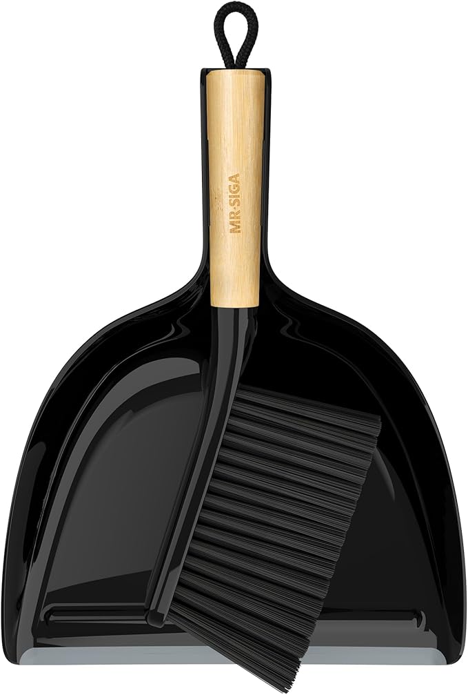 - Elegant and compact design. MR.SIGA handheld dustpan and brush set has a natural bamboo handle, its portable design makes it easy to carry and store, ideal for quick clean-ups anywhere in the home or office. Measures 13 " x 9.2 "