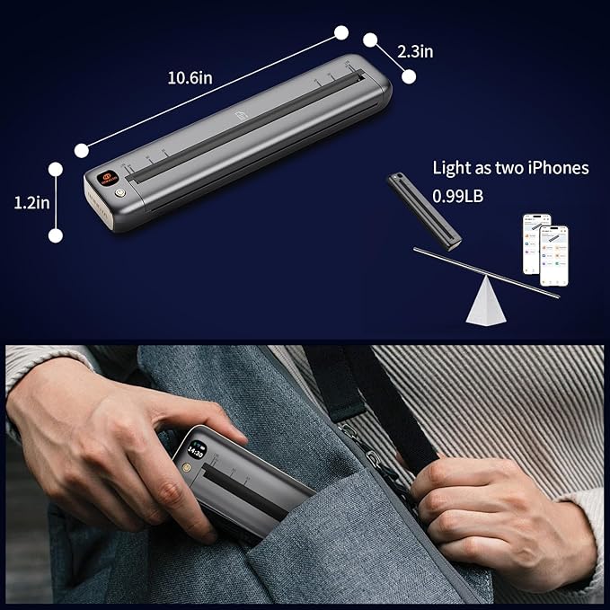 - Portable and Compact: When traveling you can take the portable printer wireless in your backpack or tote bag wherever you need. It is compact and portable whether in office home or on business trips,or any outdoor occations. Print contracts,office documents,inventory lists,or study materials for school.