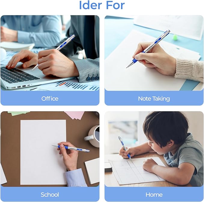 - Unique Ballpoint Pens Design: Ideal ball point pen with retractable design and comfortable anti-slip pen grip make your writing more focused. Large angle metal pen clip can help you firmly secure your pen to a notebook, backpack, or textbook and easy to carry.