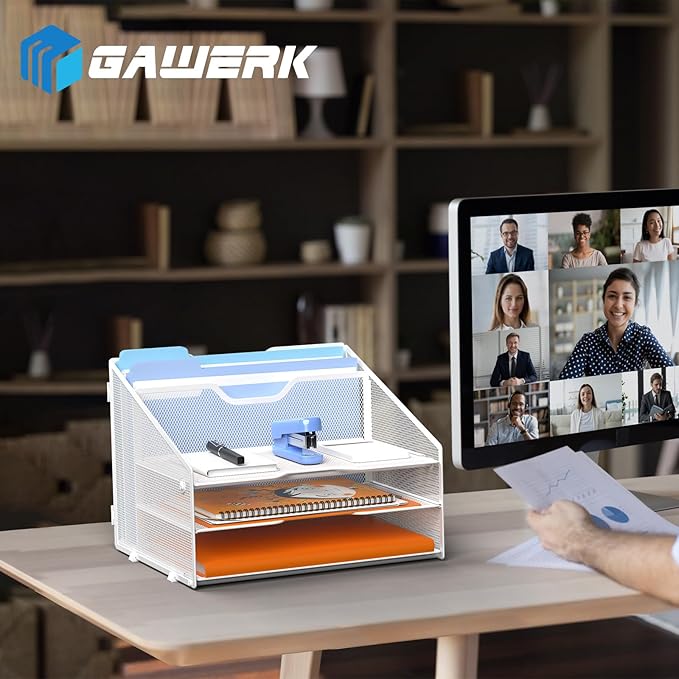- Unique Design: 3 horizontal trays for storing letters and other office essentials, and rear 2 upright area for file folders.