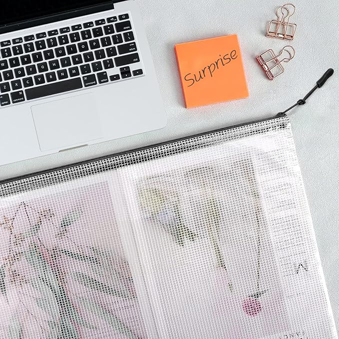 - QUALITY MATERIAL: High quality PVC material is strong and durable, the mesh bag material structure prevents tearing, the smooth metal zipper at the closure is convenient for accessing and placing documents, and the zipper of the transparent zipper mesh bag is also optimized for better quality and durability