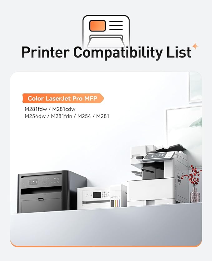 - Compatible Printer:Compatible with HP Color LaserJet Pro MFP M281cdw M281fdw M254dw M254dn M254nw M281fdn M280nw M254 M281 Series Printer.