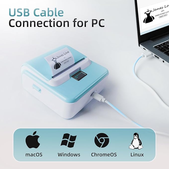 - Effortless Connectivity: ORGSTA T003 Bluetooth label maker is compatible with iOS, Android, and PC; Connect effortlessly to your phone via Bluetooth or to your computer using a USB cable; Label printer includes an easy-to-install driver compatible with Windows, Mac OS, Chrome OS and Linux; For iOS & Android phone, simply download the "4Barcode" app