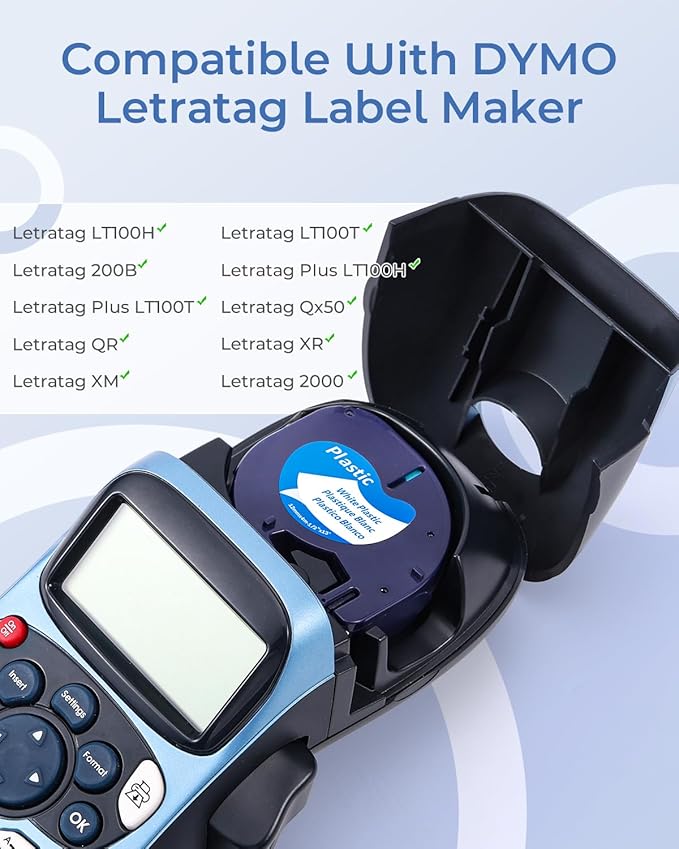 - Compatibility: Compatible with dymo letratag label maker refills compatible with dymo letratag 100h, lt-100t, lt-100h plus, lt-100t plus, lt-110t, 200b, QX50, 2000, XR, XM, P12 labeler printer, etc