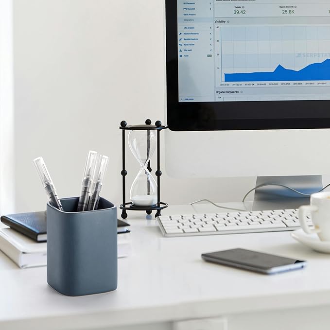 - 【Premium Material】Square pen holder for desk is made from lead-free ceramic, which is fired at high temperature,ensuring its strength and solidity for long-term use