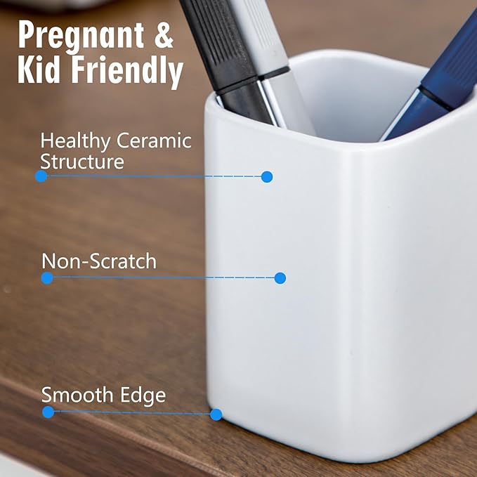 - 【Premium Material】Square pen holder for desk is made from lead-free ceramic, which is fired at high temperature,ensuring its strength and solidity for long-term use