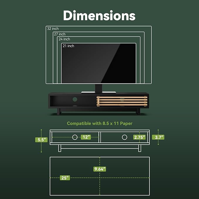 - 【Ergonomic Space Saver】Elevates screen to eye level (3.7" or 5.5" height). Multi function: monitor stand, laptop, printer, speaker & desk organizer in one