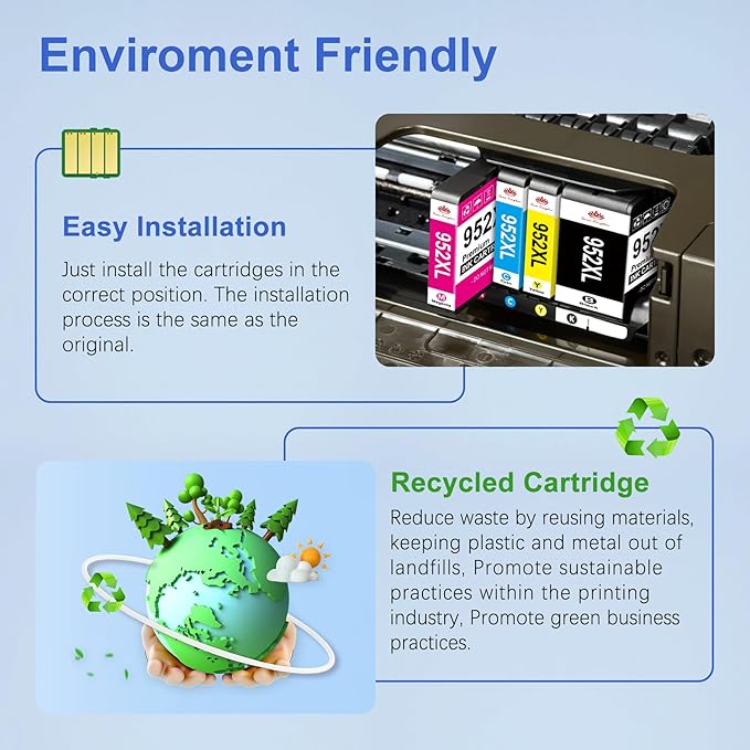 - Enviroment Friendly and Easy Installation: We sources the highest of quality remanufactured 952 xl printer ink cartridges, No need to tear the seal, it can be replaced and used immediately