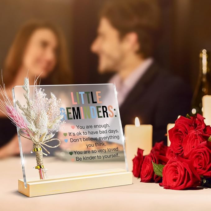 Inspirational Motivational Gifts Little Reminders You are Enough Clear Desk Decorative Sign, Bouquet Acrylic Sign With Wooden Stand for Office Desk Table Shelf
