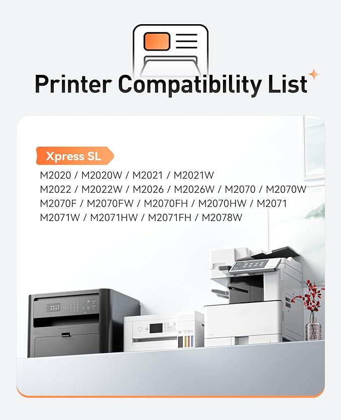 - Compatible Printers: Compatible with Samsung Xpress SL Series M2020 M2020W M2021 M2021W M2022 M2022W M2026 M2026W M2070 M2070W M2070F M2070FW M2070FH M2070HW M2071 M2071W M2071HW M2071FH M2078W Printer.