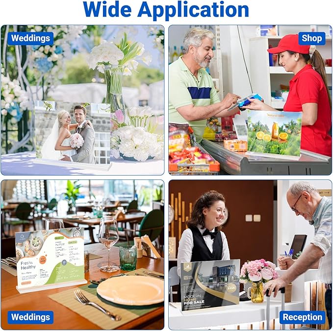 - 10 Pack Acrylic Sign Holders: Perfect for bulk purchases or multi-location displays. Can use for holding menus, price lists, promotional posters, or event notices in high-traffic areas. The durable design ensures long-lasting performance in retail stores, offices, and hospitality venues.