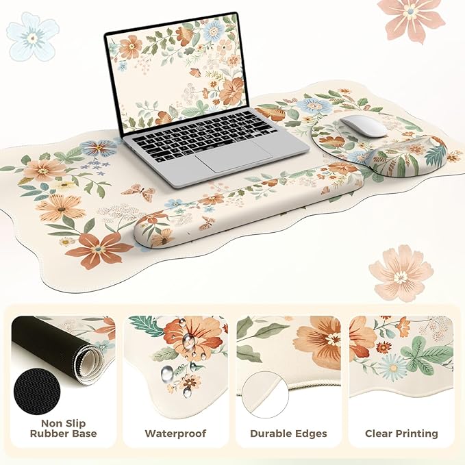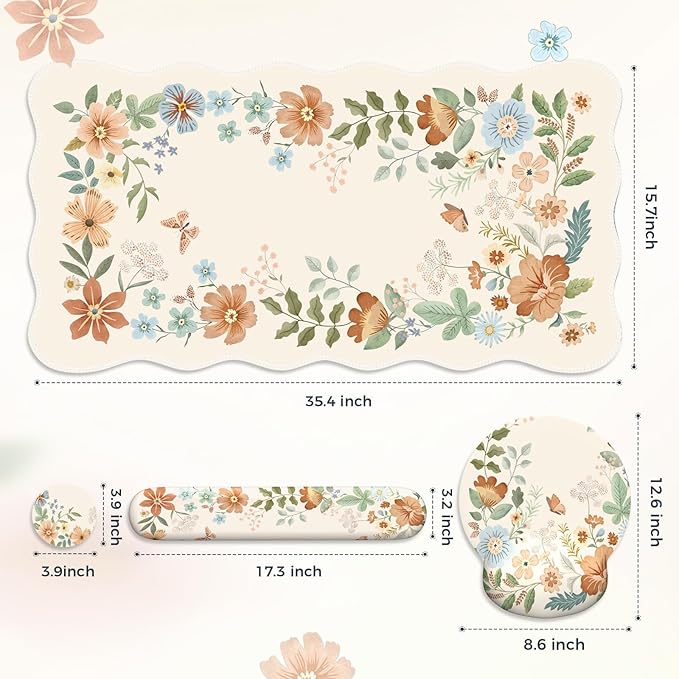 - Grandmillennial Floral Aesthetic Desk Cover Mat: Where Vintage Charm Meets Modern Function, Our Grandmillennial-inspired wildflower table mats—a delightful fusion of nostalgic garden aesthetics and contemporary design, perfect for elevating your home office or studio desk