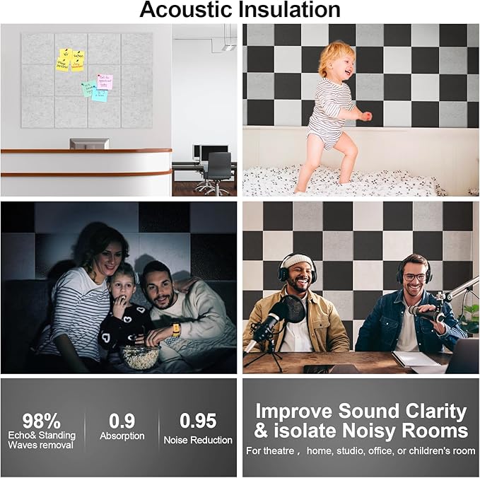 - GOOD SOUND INSULATION AND STRONG IMPACT RESISTANCE: Large area felt board helps reduce echo and noise in the room, making it the best choice for home offices, schools, children's rooms, recording studios, or any other commercial environment. Strong impact resistance can also protect your walls from wear and tear.
