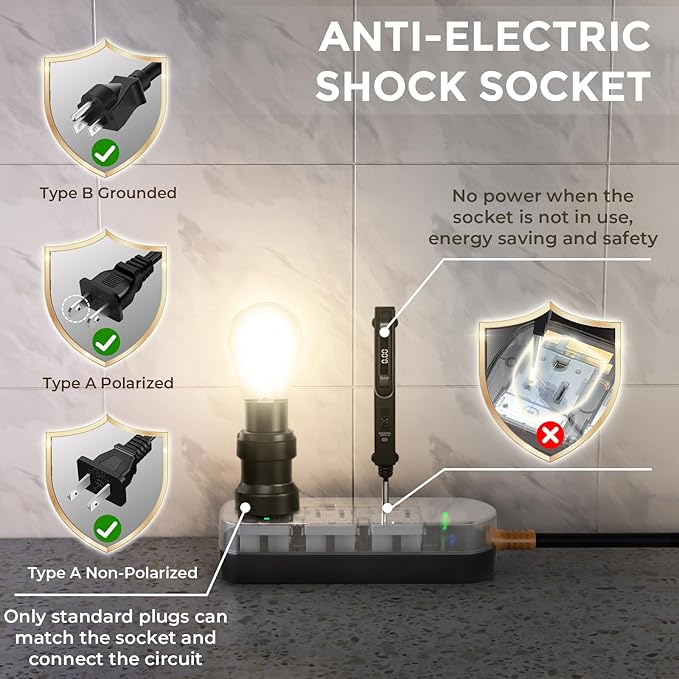 - Safety Structural Design:Our patented socket has been designed with safety as a top priority. It is compatible with standard American plugs and is equipped with a safety lock where the plug needs to be fully inserted to energise. This limits access to unintended items and helps prevent potential electrocution.