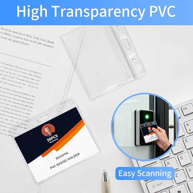 - 【50-Pack Value Set】Includes 50 clear horizontal badge holders measuring 2.44" x 3.7". Perfectly sized for ID cards, credit cards, and employee badges, this value pack ensures you always have spares on hand, eliminating the need for frequent reorders.